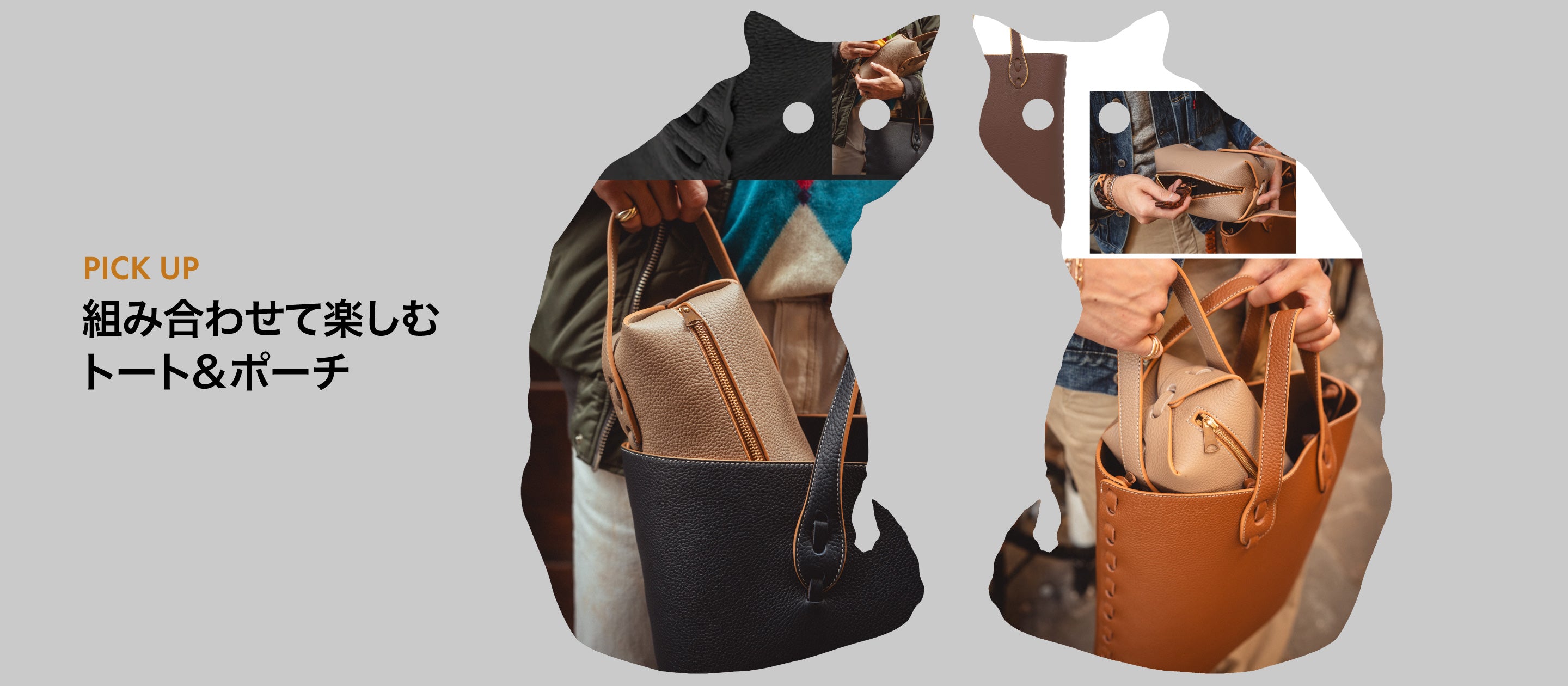 荷物が少なくなっている現代において、財布や鍵、スマートフォンなど本当に大切なものだけを入れて、軽やかに上質に持ち歩くことができるコンパクトバッグ。荷物が多くトートバッグなど大きなバッグを持つ際には、そのままバッグ・イン・バッグとして使うこともできます。まさに、現代のライフスタイルに寄り添ったコンパクトバッグには、軽やかさと上質さが大切です。