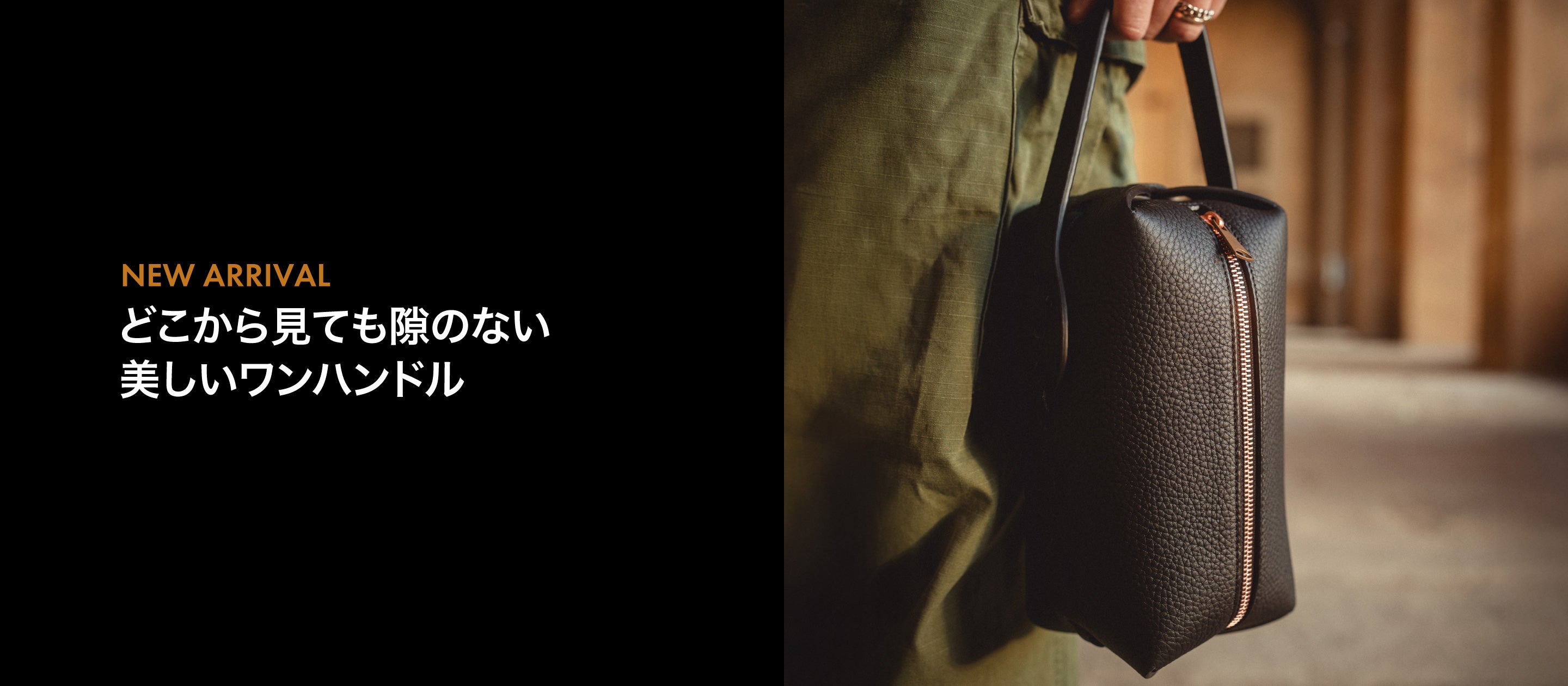 Native Craftsシリーズから、新たにワンハンドルポーチが登場しました。「手仕事の持つパワーを形にしたい」という深谷 秀隆の強い想いから生まれたシリーズは、上品なレザーの質感と職人の手仕事による技をダイレクトに感じられることが魅力です。今回日本に到着したワンハンドルポーチは、どこから見ても一切隙がなく、息を呑むほどの美しさ。まさに、il micioのものづくりへの姿勢が体現されています。