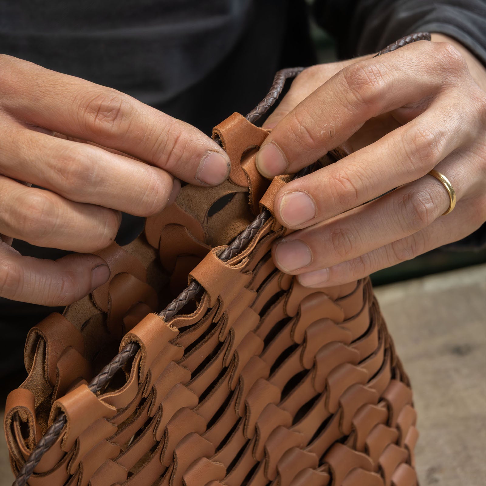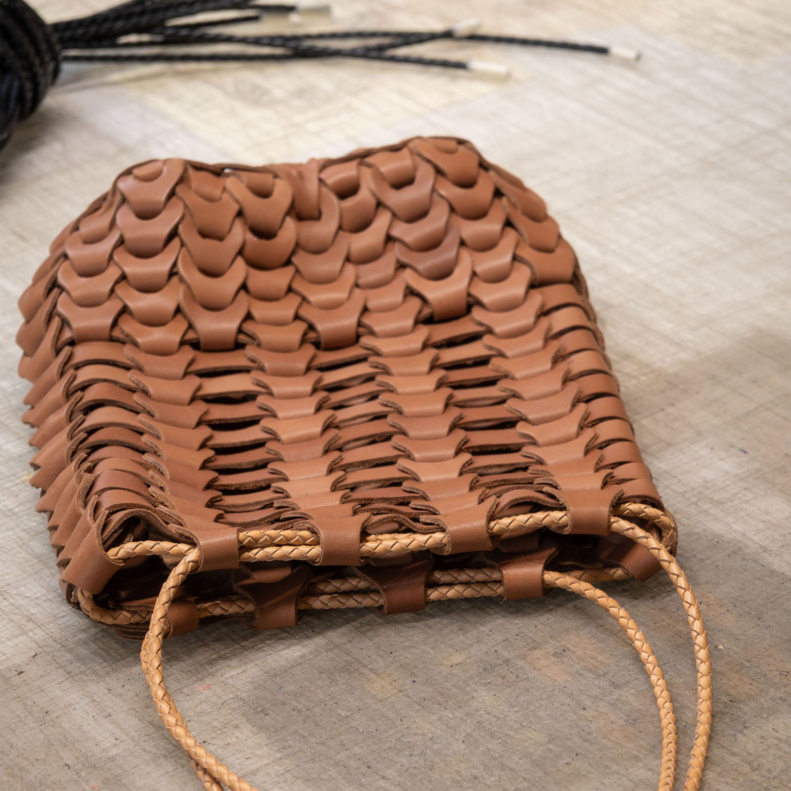 Boho巾着を構成する、大切なピースである革紐……丁寧に編み込まれた革紐は、いつもあなたのBohoを支える存在。 タイムレスな魅力を放つBoho巾着をいつまでも愛用してほしいから。職人が大切なBoho巾着の革紐交換を承ります。 新しい革紐から、Boho巾着の新しい物語がはじまります。